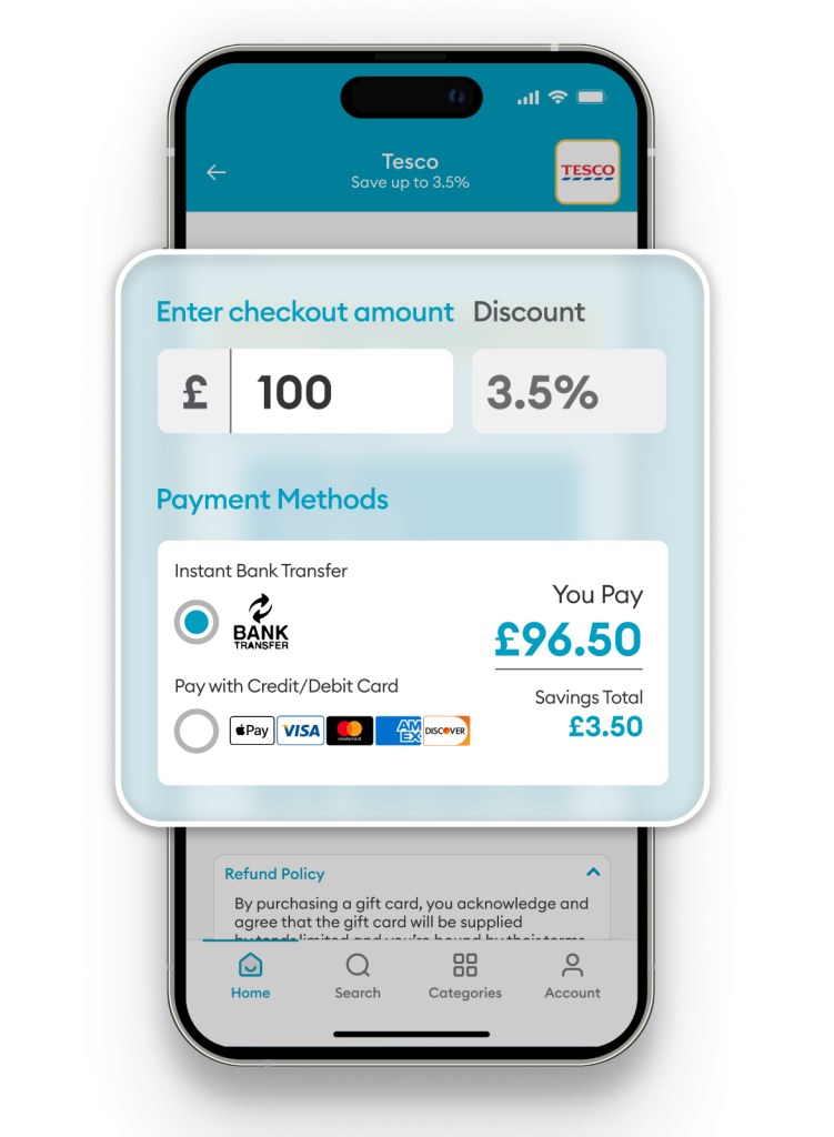The twist? Our Gift Cards are pre-discounted. So, instead of spending £20 and waiting for points or cashback, you start by paying less. Simple.
